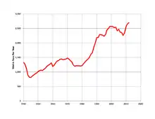 Many experts have speculated that ever since the global economy took a crash over 2 decades ago, gold’s worth has been on the rise ever since. “The price of gold, which stood at $271 an ounce on September 10, 2001, hit $1,023 in March 2008, and it may surpass that threshold again. Gold's recent surge, sparked in part by the terrorist attack on 9/11, has been amplified by the slide of the U.S. dollar and jitters over a looming global recession”.[18] This jump in gold prices was especially drastic in 2005 when the price continued to climb every year at a rate of nearly 200 dollars per year, which previously took over 160 years to achieve. This spike in price is an ominous warning to the global economy. However, this would explain why deforestation rates during the same period has reached an all-time high. Gold mining over the past five years in the Amazon however has taken a hit due to the unpopularity of gold.