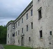 The castle was burned down by the Partisans in 1943. After the end of the Second World War the authorities refused permission to its owners to restore the castle. The building was therefore left without a roof, and it rapidly began to deteriorate and only the exterior walls now remain.[7] In 1994 a conservation program was adopted for the ruins. The current owner of the structure is Kersnik's grandson Franc Kersnik.[5] On the southwest watchtower there is a relief with portrait of Janko Kersnik.