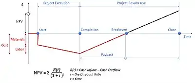 In economics and business, specifically cost accounting, the break-even point (BEP) is the point at which cost or expenses and revenue are equal: there is no net loss or gain, and one has "broken even". A profit or loss has not been made, although opportunity costs have been "paid" and capital has received the risk-adjusted, expected return. In other words, it is the point at which the total revenue of a business exceeds its total costs, and the business begins to create wealth instead of consuming it.[1] It is shown graphically as the point where the total revenue and total cost curves meet. In the linear case the break-even point is equal to the fixed costs divided by the contribution margin per unit.
