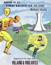 Break In At Three Kilometer Island is an adventure involving a break in by four super-powered villains, known as the Four Fiends, at the nuclear power plant at Three Kilometer Island.[1]