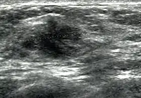 Breast ultrasound is also used to perform fine-needle aspiration biopsy and ultrasound-guided fine-needle aspiration of breast abscesses.[6] Some women prefer breast ultrasound over mammography because they dislike the pain felt during squeezing or fixing of breast done during mammography for X-ray views. Breast ultrasound is painless procedure. Breast ultrasound is usually done with frequency 7 Megahertz to 14 Megahertz. Breast ultrasound includes ultrasound of axillary tail of breast and sometime it includes ultrasound of axillae also to detect abnormal nodes in axilla because lymphatic drainage of parts of breast occur through axillary lymph nodes.
