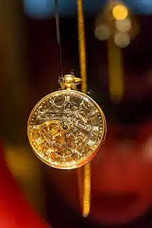 In 1783, an admirer of Marie Antoinette, the Queen of France, commissioned a watch from Abraham-Louis Breguet as a gift for the Queen.[19][20] The requirement was that the watch should be "as spectacular as possible, incorporating the fullest range of horological expertise known at the time".[19][56] There was no time deadline or financial limit with the commission.[19]