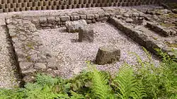 Several antiquarians recorded their visits to Ribchester, including John Leyland, William Camden, and William Stukeley.[11] Excavations began in the nineteenth century, with those undertaken by Thomas May and Donald Atkinson recovering the outline of the fort.[11] The granaries were excavated in 1908, including the discovery of a layer of charred cereal grain.[12] The Manchester Classical Association excavated part of the Principia in 1913, reported by Haverfield in 1914.[13] Private excavations were undertaken in 1967 of a bath house.[2] Excavations were undertaken in 1980 in the vicus.[14] Ribchester featured in series 1 of Time Team.[15] The University of Central Lancashire undertook excavations during the 2010s in the area of the north gate of the auxiliary Roman fort.[16]