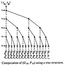 The design of the white nodes is obvious as they are just buffering the gi's and pi's, and the black nodes are performing operation defined by operator o, which is similar to a one bit adder.