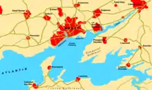 During the Middle Ages, the history of Brest was the history of its castle. Then Richelieu made it a military harbour in 1631.[7] Brest grew around its arsenal until the second part of the 20th century. Heavily damaged by the Allies' bombing raids during World War II, the city centre was completely rebuilt after the war.[8] At the end of the 20th century and the beginning of the 21st century, the deindustrialization of the city was followed by the development of the service sector. Nowadays, Brest is an important university town with 23,000 students.[9] Besides a multidisciplinary university, the University of Western Brittany, Brest and its surrounding area possess several prestigious French elite schools such as École Navale (the French Naval Academy), Télécom Bretagne and the Superior National School of Advanced Techniques of Brittany (ENSTA Bretagne, formerly ENSIETA). Brest is also an important research centre, mainly focused on the sea, with among others the largest Ifremer (French Research Institute for Exploitation of the Sea) centre, le Cedre (Centre of Documentation, Research and Experimentation on Accidental Water Pollution) and the French Polar Institute.