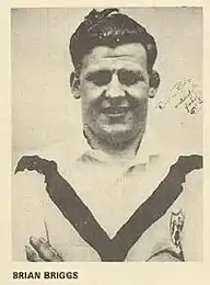 Brian Briggs (29 March 1932 – 2 August 1996) was an English professional rugby league footballer who played in the 1950s and 1960s. He played at representative level for Great Britain, England and Yorkshire, and at club level for Stanley Rangers, York, Huddersfield, St. Helens (Heritage No. 749) and Wakefield Trinity (Heritage No. 665), as a second-row, i.e. number 11 or 12, during the era of contested scrums.[1]