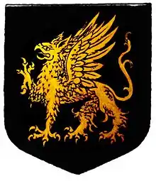 Sable, a griffin passant, or