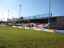 It is the home ground of Histon F.C. and has a capacity of 4,300 with approximately 1,700 covered seats.[1] Recently the ground has gone under a transformation improving its facilities ensuring that it is of a high enough standard to allow the Stutes to be promoted to the Conference National – as recently as 2003 the club only had covering in the Main Stand for around 350 fans and a small 'temporary' covered standing area which held around 150 fans. The ground's main structures are two grandstands situated at the entrance to the ground, running down one side of the pitch. Opposite is a smaller covered stand, and covered terraces are found behind each goal. The away end is called 'Bridge Road' in reference to the road it runs adjacent to; it is behind the goal to the right of the main grandstand looking from it. The opposite terrace is called the Rec End by the Histon fans. It is mainly used by the home fans when games are segregated.