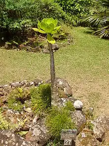 Brighamia insignis, commonly known as ʻŌlulu or Alula in Hawaiian,[2] or colloquially as the vulcan palm[3] or cabbage on a stick,[4] is a endangered species of Hawaiian lobelioid in the bellflower family, Campanulaceae. It is native to the islands of Kauaʻi and Niʻihau. This short-lived perennial species is a member of a unique endemic Hawaiian genus with only one other species.
