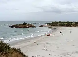 Brighton is a small seaside town within the city limits of Dunedin on New Zealand's South Island. It is located 20 kilometres southwest from the city centre on the Southern Scenic Route. The town faces a small bay which includes a broad sheltered beach. Other beaches extend from here. They make the area popular for summer day trips from Dunedin.