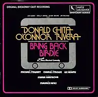 Bring Back Birdie opened on Broadway on March 5, 1981 at the Martin Beck Theatre and closed on March 7, 1981 after 4 performances and 31 previews. Directed (and with original conception) by Joe Layton, the set design was by David Mitchell, costume design by Fred Voelpel, lighting design by David Hays, choreography by Frank O'Dowd, musical direction by Mark Hummel, and principal orchestrations by Ralph Burns. The cast featured Donald O'Connor (Albert), Chita Rivera (Rose), Maurice Hines (Mtobe), Marcel Forestieri (Birdie), Robin Morse (Jenny), and Maria Karnilova (Mae).