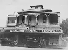 Membership of the School of Arts steadily declined during the 1920s and 1930s. To increase revenue, shops were built in front of the building in 1937. In 1955 a brick upper storey was added to the shops with connections to the School of Arts building. The verandahs were removed at this time.[1]