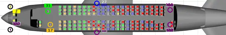 This caused jamming at all exits, and the seat over which the overwing exit was located failed in such a way that the seat back collapsed forward, causing a further obstruction. A man who had been seated in 16C was found dead lying across this exit, and investigators were unsure whether the seat back collapse had trapped him.[1]: 138 A fourteen-year-old boy was found lying across the top of the man from seat 16C by firefighters 51⁄2 minutes after the aircraft had stopped. He was alive, suffering only superficial burns to his hands. He was the last of 27 survivors to escape through that exit, and the last evacuee to survive the accident.[1]: 8, 139 Most of the 38 bodies were found clustered around the overwing exit.[1]: 138 This exit was the first exit available to the 76 passengers seated behind it or even with it, and the nearest exit for 100 passengers.[1]: 137