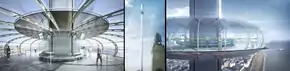 The glass passenger pod was designed and built by cable car specialists Poma, which also built the London Eye capsules. The passenger pod is 18 m (59 ft) in diameter and holds up to 200 people. The viewing pod travels from street level to a height of 138 m (453 feet) before returning to beach level. The pod provides a 360-degree view through curved glass and is heated and air-conditioned, with full wheelchair accessibility and bench seating. It also contains a bar[11] and restaurant in the base building.[12]