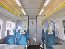 Class 171s have mainly standard-class seating plus either nine first-class seats on a two-car or 18 on a four-car; all first-class seats are reclining and have AC power sockets adjacent to the seats.