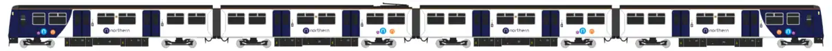 The modifications, which will be carried out by Brush, will enable units to operate on electrified and non-electrified routes, using both 25 kV AC overhead wires and 750 V DC third rail. Each generator set will consist of a MAN D2876 diesel engine driving an ABB alternator.[30] The first units were expected to enter service with Northern by spring 2018,[31][32] but were delayed until 2019, and now 2020 with new operator Northern Trains.[33]