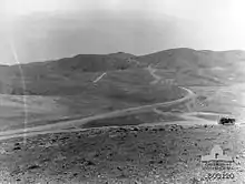 Shortly after the withdrawal from Amman a force of seven Ottoman aircraft bombed the Jordan Valley garrison and on 11 April 1918 a series of Ottoman attacks were made on Ghoraniyeh bridgehead, on El Mussallabeh hill and on the Auja position.[34][35][36] This attack is referred to by the British as the 'Turkish Attack on the Jordan Bridgeheads'.[37]