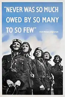 In 1940 in particular, Winston Churchill made many calls for the British to fight on, and for British units to fight until they died rather than submit.[10] His calls for fight to victory inspired a hardening of public opinion.[11] Determination raised the numbers of the Home Guard and inspired a willingness to fight to the last ditch, in a manner rather similar to Japanese determination, and the slogan "You can always take one with you" was used in the grimmest times of the war.[12]