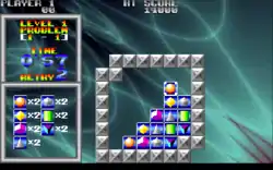 Brix is a puzzle game for MS-DOS, developed by Michael Riedel and produced and published in 1991. An updated version with enhanced graphics & sound was published by Epic MegaGames in 1992. It is a clone of Taito's Puzznic, and thus bears strong graphical and some gameplay similarities to Flipull/Plotting, also produced by Taito.[1] A deluxe version of the game titled Brix 2 Deluxe was released alongside the Epic MegaGames release, with dozens of new levels and a level editor.[2]