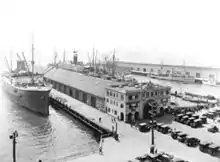 In the 1970s, the Broadway Pier was remodeled by San Diego architecture firm Innis-Tennebaum architects' Donald Innis. It was designed and configured so that a person looking down Broadway could still see the bay (this is no longer the case with the new remodeled structure that was built in its place). Its innovative 1970s remodeling also originally featured planter boxes with trees and foliage, which was one of the first of its type of above-water structures to do this. The pier was featured as a location in the 1979 film Hardcore directed by Paul Schrader and starring George C. Scott (standing in as Los Angeles) and was also the location for the big, splashy 2003 premiere party for the Academy Award winning Russell Crowe film Master and Commander: The Far Side of the World a film directed by Peter Weir.[3][4] In 2010, the 1970s version of the Broadway Pier building was demolished and a modern cruise ship terminal was erected in its place.[5]