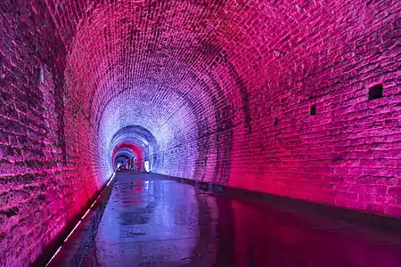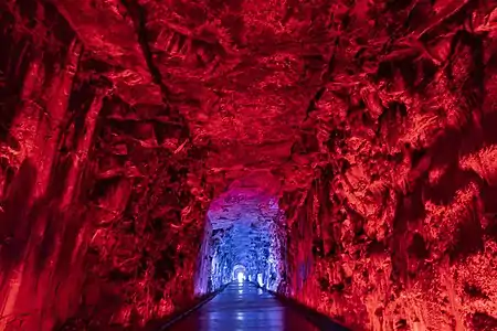 The railway tunnel has received thousands of visitors since it opened completely on August 12, 2017. It now features a modern LED coloured light system, which is programmed in various ways, along with a recorded music track playing while one walks through.