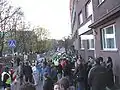 Flowers and police at the old location of the monument, 9 May 2007
