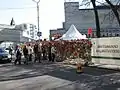 In 2006, the conservative Pro Patria Union petitioned the Tallinn City Council to demolish the monument,[21] which saw the Estonian president in January 2007 vetoing a bill which would have allowed for its destruction and instead ordering its removal from the city centre.[22] In February 2007, Estonian nationalists unsuccessfully attempted to place on the statue a wreath made of barbed wire decorated with a plaque saying "Murderers of the Estonian People".[23]