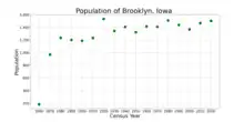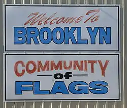 Brooklyn is a city in Poweshiek County, Iowa, United States. The population was 1,502 at the 2020 census.[2] It is located just off U.S. Route 6 and a few miles north of Interstate 80. Near the center of town, Brooklyn boasts a large display of flags from each of the fifty states, the four branches of the military, and a smattering of other sources. The city bills itself as "Brooklyn: Community of Flags."