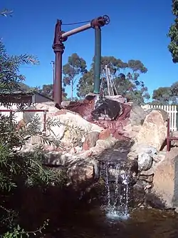 Brookton is located on Great Southern Highway, 138 kilometres (86 mi) east of Perth via Brookton Highway and is a key agricultural centre for a rich mixed farming district. In the 2001 census, it reported a population of 975.[7] It contains a TAFE centre, and in addition, a district high school (opened 1960, replacing a primary school), Bendigo Bank, shopping facilities, accommodation (hotel, motel, caravan park), council offices and a telecentre are located within the town. Bi-annually, it hosts the Old Time Motor Show.