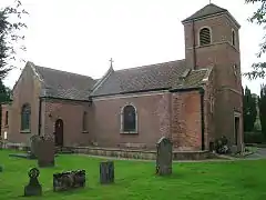 The church of St Peter is of ancient date and during a period of neglect the church bell once hung from an old oak tree stump in the churchyard. The church was rebuilt in brick about 1780 with its main entrance through the first stage of the tower. Inside is a marble monument designed by John Flaxman commemorating Anne Hill, who died in 1804. There is also the bowl of the original Romanesque font, restored from the former church.[10] St Peter's was grade 2 listed in 1958.[11] From Victorian times it had a small adjoining school which closed in 1933. The church now forms part of a combined ministry with the villages of Blakedown and Churchill.[12]
