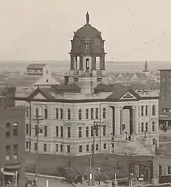 Columbia, South Dakota, was the site of Brown County's first courthouse until 1887 when Aberdeen became the county seat.[3][4] A dispute followed, and the county seat moved back to Columbia from November 1889 until 1890, after which Aberdeen permanently became the county seat.[4] After becoming the county seat, a wood frame courthouse building was built in Aberdeen.[5][6]