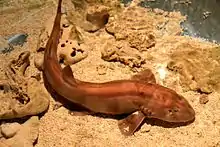These sharks are nocturnal animals and can survive out of the water for up to 12 hrs. These sharks have barbels, which are sensory organs that look like whiskers. Hence the common name "cat shark".[6] Despite this moniker, they are not true members of the catshark family, and are more closely related to the nurse sharks, wobbegongs and whale sharks, belonging in the family Orectolobiformes.