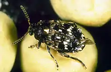 Bruchus pisorum, known generally as pea weevil, is a species of leaf beetle in the family Chrysomelidae. Other common names include the pea beetle and pea seed beetle. It is found in Europe and Northern Asia (excluding China), North America, and temperate Asia.[1][2][3]
