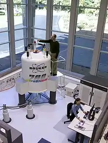 In 1969, Bruker launched the first commercial Fourier transform NMR spectroscopy system (FT-NMR) and in the 1970s the company was the first to commercialize a superconducting FT-NMR. Later, the company would expand their product range with MRI, FTIR and FT-Raman spectrometers and with mass spectrometers.[7]