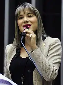 She is the daughter of Adalberto Ferreira da Silva and Irani Aparecida da Silva.[1] Before becoming a politician she was the hostess of the television program Brunny e Vc a local television show shown primarily in her hometown of Governador Valadares and broadcast by TV Alterosa.[2] Gomes is married to Hélio Gomes, a businessman and politician who serves in the Minas Gerais state legislature and is 37 years the senior of Brunny,[2]