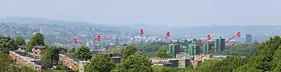 The 1950s and 1960s saw the construction of numerous brutalist apartment blocks in Sheffield, England. The Sheffield City Council had been clearing inner-city residential slums since the early 1900s.[1] Prior to the 1950s these slums were replaced with low-rise council housing, mostly constructed in new estates on the edge of the city.[1] By the mid-1950s the establishment of a green belt had led to a shortage of available land on the edges of the city, whilst the government increased subsidies for the construction of high-rise apartment towers on former slum land, so the council began to construct high-rise inner city estates, adopting modernist designs and industrialised construction techniques,[1] culminating in the construction of the award-winning Gleadless Valley and Park Hill estates.[2]