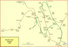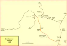 There was a short spur to the Ffrwd Colliery, and a short spur to Brynmally. These were apparently the only WM&CQR branches in the Wrexham area at first.[12][13]