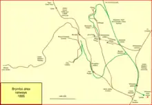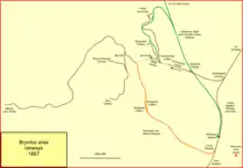 The line as approved was from triangular junction near Gwersyllt to Brymbo; the northern arm of the triangular junction was the privately built Gatewen Colliery line, soon to be called Brymbo Junction. The line would connect Plas Power colliery (newly opened, and already served by the GWR line) and the Brymbo works, with a southward line from Brymbo to Vron, parallelling the GWR Vron branch. There would also be a southward extension from Brynmally to the Westminster Colliery. Gradients on these lines would be stiff.[26][27]