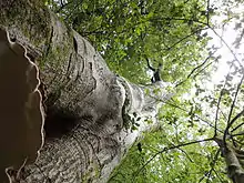 The western border of Coed Kensington is informally marked by the ‘Beech Avenue’. The beech avenue was planted in 1837; since then however, many of the original trees have died and due to their similar age the others have all become susceptible to the parasitic fungus Ganoderma sp.. Since the discovery of the fungus they have been subjected to a tomography survey which deemed them unsafe. Many of the mature standards however have become very favourable summer roosts for the local bat populations, as their positioning creates a clear linear glade, which is used by the bats for navigation, in the damp woodland which is a key habitat for many the bat's invertebrate prey species. Legislation protects the bats and their roosts from disturbance and so the remedial work needed to allow the Beech Avenue to be re-opened must follow a comprehensive bat survey to determine the number of trees affected and by which species of bats and how many. Once this data is ascertained, the impact of the removal of these trees on the bat populations can be assessed, and a plan of works can be established. This work will not be able to be started until the bats have vacated these summer roosts and even then will have to be sympathetic, probably involving soft-felling techniques, where the limbs will be cut and lowered to the ground, to leave pollarded standards.[9]