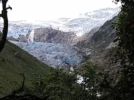 Buarbreen or Buerbreen is a glacier in Ullensvang Municipality in Vestland county, Norway. It is an offshoot of the large Folgefonna glacier. The small glacial arm reaches down into the Buerdalen valley, just 6 kilometres (3.7 mi) southwest of the town of Odda. The glacier is split into two parts, one on either side of a small mountain peak. Both sides drain into the Jordalselvi river which flows out through the valley into the lake Sandvinvatnet.[1]