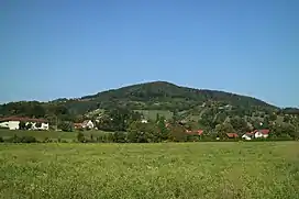 The Buchkogel, at 656 meters above sea level, is a hill in the Austrian state of Styria. It is located in the southern part of the Grazer Bergland in the west of the state capital Graz. The mixed forests within the Plabutsch ridge serve as a popular recreation area. Parts of the karstified hill were settled back in the Chalcolithic period and served for limonite mining during the Middle Ages and World War II. On the top there is the historical Kronprinz Rufolf observation tower built in 1879. The name Buchkogel is either derived from a lost castle (German Burg)[1] or the extensive beech (German Buche) population.[2]