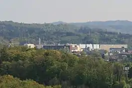 Buchs offers approximately 4100 jobs, whereof 1% in agriculture, 48% industry and 51% services.[13] The industrial areas are mainly located near the railway line in the north, and in the "Wynenfeld" in the south-eastern part. The largest employers are the Chocolat Frey AG, the Jowa bakery and the Mibelle AG cosmetics manufacturer, all of them belonging to Switzerland's largest retailer Migros. Express and mail delivery company TNT has its Swiss head office and hub in Buchs. The waste incineration plant KVA (Kehricht-Verbrennungs-Anlage) Buchs incinerates the waste of 82 municipalities.