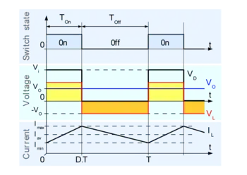 Therefore, it can be seen that the energy stored in L increases during on-time as increases and then decreases during the off-state. L is used to transfer energy from the input to the output of the converter.