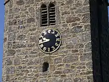 The church is made of stone quarried on the moor. The face of the clock spells out "My Dear Mother". The baptismal font is Norman, and decorated with leaves and stars. Nearby there is a viewpoint called Buckland Beacon where may also be found the 10 Commandment Stones (1282 ft).