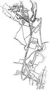 At the centre of the Buckley estate was a watermill used for grinding grain, which existed at least as early as 1335, and Buckley Hall, which first appears in written records in a description dated 1626.[4] Buckley Hall was noted as a "faire mansion house",[4] and was owned by a family or families surnamed Buckley, after the locality.[2] The Buckleys of Buckley used Buckley Hall as a chapel and residence and continued to have influence over local and regional affairs as priests, yeomen, esquires and other gentry into the Early Modern Period; Geoffrey Buckley of Buckley was the Rector of St Alban's Church in London during the 1470s,[8] and John Buckley of Buckley, son of Abel, was a Lieutenant Colonel with the Roundheads at the Siege of Lathom House during the English Civil War.[9] When the manor of Hundersfield was abolished and its territory subdivided amongst new townships,[10] Buckley Hall and its surrounding area fell within the bounds of Wardleworth.[1] Buckley appears to have been the "principal estate" of Wardleworth and encompassed land in the outlying areas of Foxholes and Fieldhouse.[2] The main line of the Buckley family continued to own Buckley Hall and its estates,[11] while other members founded new families in Saddleworth,[12] and Shaw and Crompton.[13] The lineal descendants of the Buckleys of Buckley gradually diminished in number and influence through death and migration; the last member of the main branch of the Buckleys of Buckley was a Captain William Buckley.[11] In 1722, Captain Buckley had a lethal dispute with Major Samuel Crooke, the High Sheriff of Lancashire, regarding a right of way in Higher Walton, Lancashire. Buckley and Cooke entered a duel at Rochdale in which Cooke was killed.[14] Buckley was tried at the assizes in Lancaster and found guilty of manslaughter, but received "only a light sentence". He died in 1730.[11]