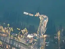 Aerial view of Denman Island Ferry terminal at Buckley Bay