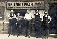 A well-known Hungarian-Jewish architectural team also designed Hungary’s first department store, the Corvin Áruház, on Blaha Lujza tér. The architect was Zoltán Reiss,[14][15] who designed many buildings in Budapest and elsewhere in Hungary during the first decades of the twentieth century, and who also served as an officer in the Austro-Hungarian army in the First World War. Construction of the classicist building began in 1915, with the department store finally opening in 1926 (five years later it incorporated Hungary’s first escalator). It was owned by M.J. Emden and Sons, Hamburg.[16] The external sculptural reliefs were the work of the famous Hungarian-Jewish sculptor Ödön Beck,[17][18] who vanished on 31 January 1945 during the Siege of Budapest.