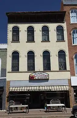 The Budde–Singer Building is a historic building located in Mount Pleasant, Iowa, United States. This three story, brick Italianate structure was built in 1882. It replaced a similar building that had been built in 1856 and destroyed in a fire. Its early Italianate style is unusual for this time period, but it fits into its streetscape with similarly designed buildings, including the neighboring Brazelton House Hotel.[2] The Budde–Singer Building features round arched windows with brick patterned hoodmolds on the second and third floors, and a bracketed wooden cornice. The first floor storefront has been somewhat altered, and the exterior of the building has been painted since about 1909.[2] It was listed on the National Register of Historic Places in 1991.[1]