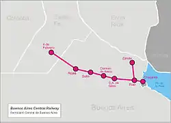 The Buenos Aires Central Railway (FCCBA) (in Spanish: Ferrocarril Central Buenos Aires) was an Argentine railway company which built and operated a 1,435 mm (4 ft 8+1⁄2 in) standard gauge railway line from Buenos Aires to the city of 4 de Febrero in Santa Fe.