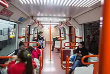 Line C was originally served by Siemens-Schuckert Orenstein & Koppel rolling stock, which were replaced in 2007 by Nagoya rolling stock transferred from Line D as 100 Series cars arrived on that line.[59] These cars began to be refurbished in 2014, equipped with air conditioning, new lighting and upholstery, among other changes.[60] The refurbishment of the 78 Nagoya cars is set to be completed in 2015–2016.[61] In 2014, 30 additional cars were purchased from the Nagoya Municipal Subway began to arrive in the country, belonging to the newer 5000 Series.[36]
